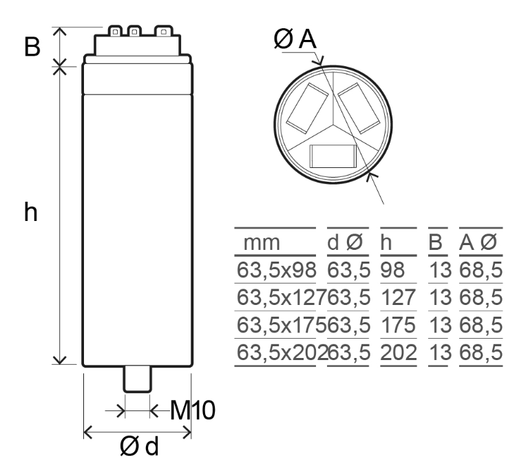 خازن سه فاز سیلندری 2/5 کیلووار 440 ولت مدل CIRCUTOR , CLZ-HD اسپانیا